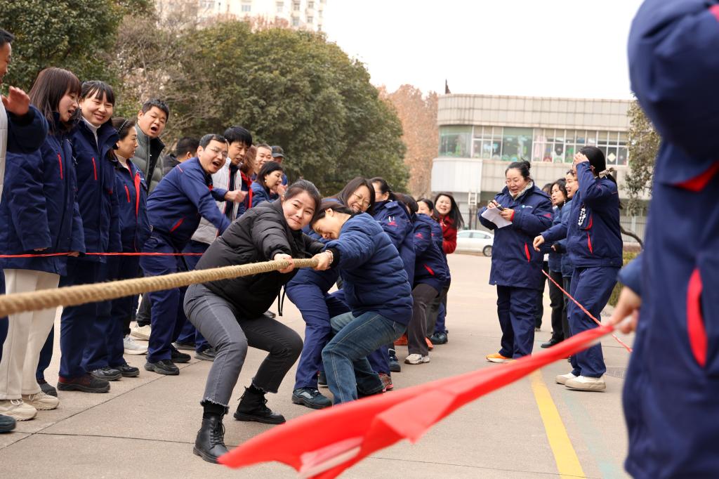 力拔千鈞展豪情,繩牽眾志啟新程。此次拔河比賽分為男子組和女子組。比賽現(xiàn)場(chǎng),各個(gè)隊(duì)伍都嚴(yán)陣以待,摩拳擦掌,躍躍欲試,眼神中透露出堅(jiān)定的決心和志在必得的信念。隨著裁判的一聲哨響,比賽正式拉開(kāi)帷幕。剎那間,雙方隊(duì)員爆發(fā)出驚人的力量,雙手緊緊拽住繩子,身體拼命后仰,迸發(fā)出無(wú)盡能量。繩子中間的紅色標(biāo)記在兩隊(duì)之間來(lái)回移動(dòng),每一次小小的偏移都牽動(dòng)著場(chǎng)內(nèi)外的心。場(chǎng)外啦啦隊(duì)和觀眾扯著嗓子喊著號(hào)子為自己的隊(duì)員加油助威,加油聲、吶喊聲、歡笑聲此起彼伏,熱鬧非凡。
