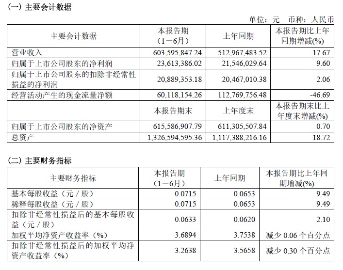 寶光股份2022年半年度主要財(cái)務(wù)指標(biāo)